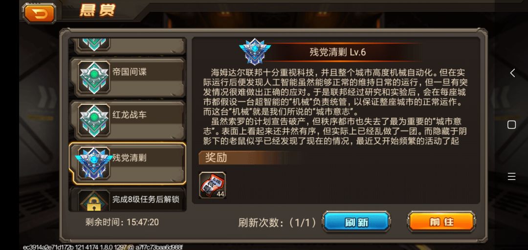 今天运气不好,遇到坑任务了!全是456级任务,根本打不过!任务还是3级及以下最好,高了相当于没有任务!
