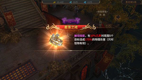 神佑之戒:光环技能,杀小怪掉落装备和金币加30%