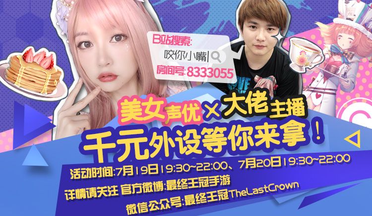 本周五、周六晚19:30分,锁定B站咬你小嘴直播间:8333055。挑战主播,赢取圣物,更有每天两次的弹幕抽奖活动!
