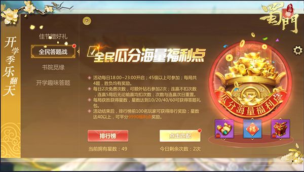 这是一场紧张激烈的竞赛,比拼的是知识更是手速!另外偷偷透露一下,此次答题活动会增加仙侣相关的题目,划重点了各位!