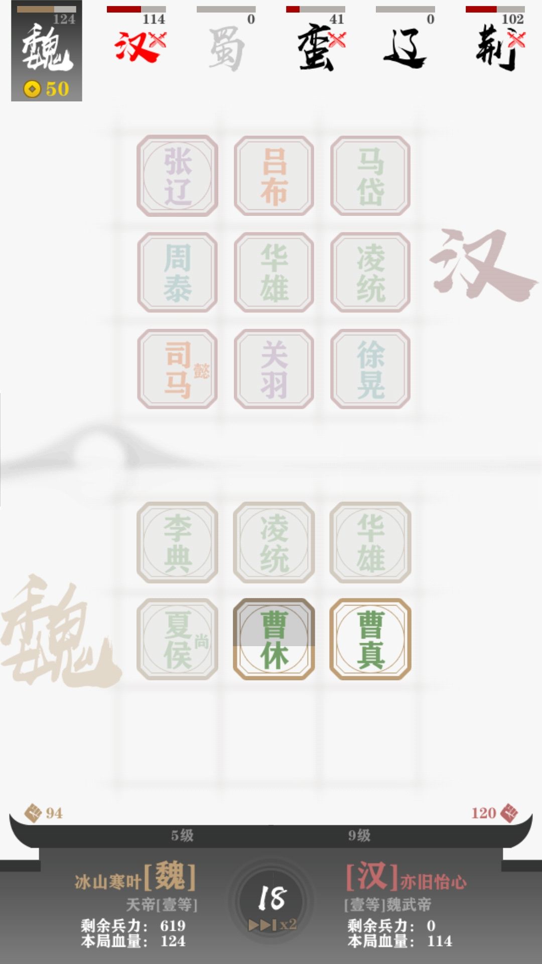 各势力组合推荐:曹魏: 戟兵:李典,华雄,凌统 虎骑:曹真,曹休,夏侯尚 枪兵:乐进,文丑,廖化
