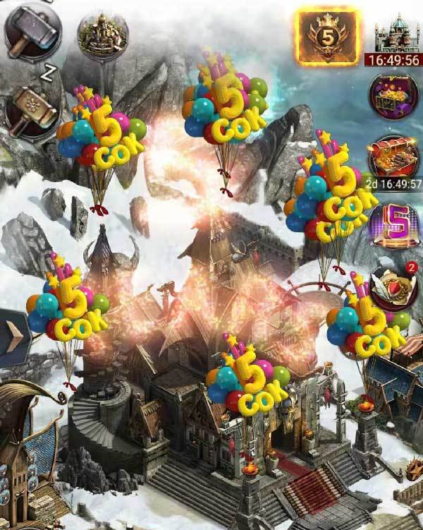 各位领主大大,COK终于迎来她的5岁生日啦!目前上线了多个战场例如:皇家角斗场、龙鼎之战、杀戮战场以及本次COK五周年嘉年华重磅来袭的“神秘海域”相信您肯定会在本次COK五周年嘉年华当中玩的开心,玩的尽兴。