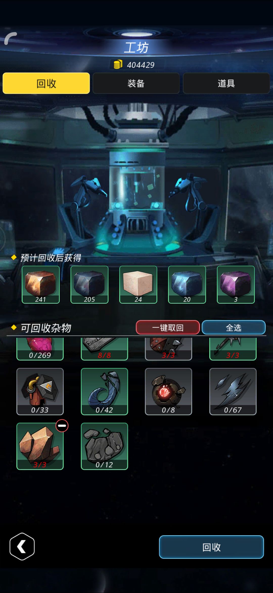 请注意,刷装备进阶等级这东西,建议大后期主线都通完再刷,前中期带着刷一点就行,也就是说,每天有多余的体力,再去自动探索或手刷星港或者雷霆旷野,没必要死命刷进阶,先把装备强化等级强化的+50再说(个别素材可能工匠需要用,所以谨慎出售素材,不然小心流下悔恨的眼泪,233)