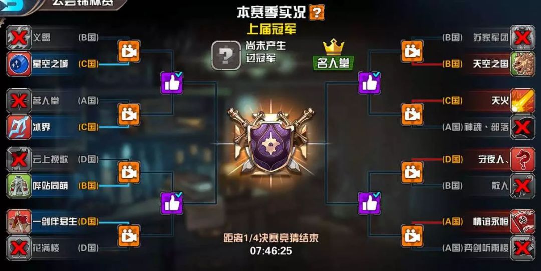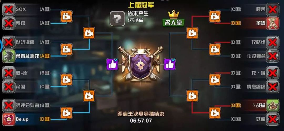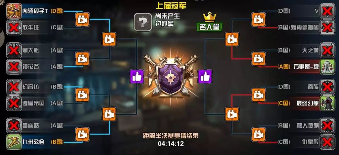 左半边,养生自强会不愧为B国拿过国王的公会,拿到八强入场券并不意外,金拱门公会看来在送外卖之余也没有落下自身战力的提升。而妖馆和墨道的胜出想必也在大家意料之中,不过可惜的是恐怕妖馆只能止步于八强了。右半边,D国一直是一个养老的国度,在种田中低调发展的内涵福利社轻松将对手摁在地上摩擦,拿到入场券,神之蒙面以弱胜强,又给Hall添上一道新伤疤。万里沙战胜国防部,至此C国全灭,而大浪漫主义也未能在上次大战中修养过来,惨遭神之喵公会淘汰出局。