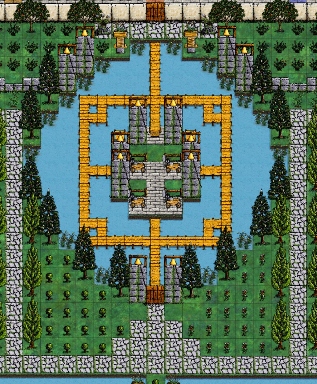 昨天看到某只大水怪在蹲南门,就试着做了一个,花园版,石头的,直的可通行的走廊,可嫁接原有的防堵墙,完美的安全措施。