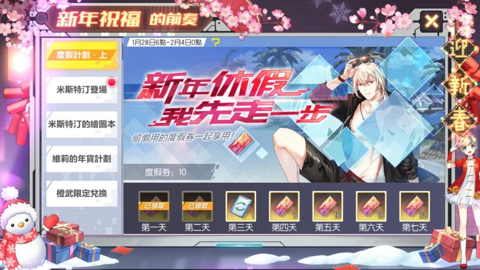 活動期間每天登入即可領取【度假券】