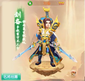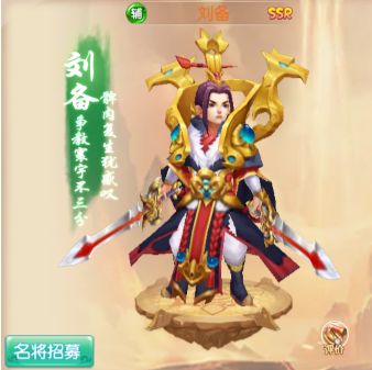 介绍:刘备,字玄德,西汉中山靖王刘胜之后,三国时期蜀汉开国皇帝,即汉昭烈帝。卖草鞋出身,手下名将众多。特点是最能拉拢人心。谦逊宽厚,仁德于世,建立蜀汉基业。