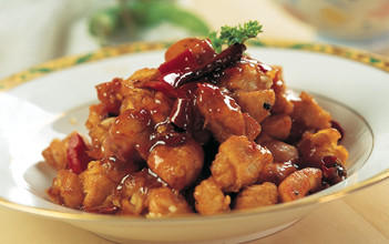 辣子鸡块是四川汉族风味名菜,属于川菜。用鸡脯肉加辣椒炒制而成。泡红辣椒是四川特产,为川菜的特有的调味料,色鲜亮、入口香嫩,同时花生香脆,新鲜微咸。