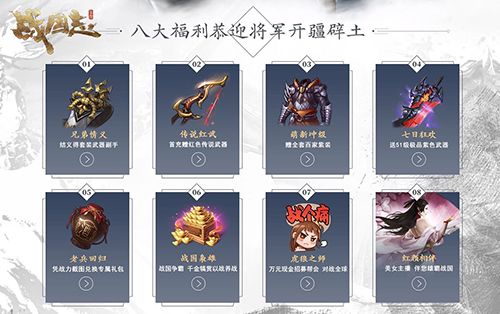 《战国志》官方准备了诚意满满的八大福利,助阵将军征战战国,包括萌新全套百家紫装、义结金兰套装副手、51级极品紫色武器、首充活动红色传说武器等等。此外,将军若是一名国战老兵,也可将过往账号的战力截图发至《战国志》微信公众号后台,换取老兵专属礼包!