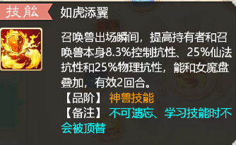 还有一个扛揍和扛控制的神器那就是神兽专属技能如虎添翼,改版后的如虎添翼已经得到了很大的加强,配合上人物的抗性,五蕴皆空,男龙修正,那扛揍能力基本已经达到了令人发指的程度。所以说有这三大法宝在,纯血队伍哪怕在低等级血量相对较少,抗性相对较薄弱的时候也可以变的异常肉,然后通过男鬼的回血,保证低敏火力的输出来持续的打反手也是一种不错的战术,要知道对面速度快他们的血量就低,那么你们这边一波输出对他们造成的伤害往往是致命的。