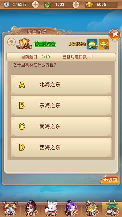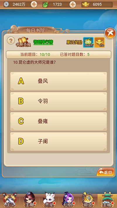 在活动大厅内,就能看到科举比赛和每日书院的入口,每日书院为55级开放。小编带着众玩家的使命,有幸提前去参与了一下“每日书院”的答题活动,并且最重要的是,冒着被研发大大关进小黑屋的风险,偷偷带来了部门题目(还不快点拿小本本记下)。