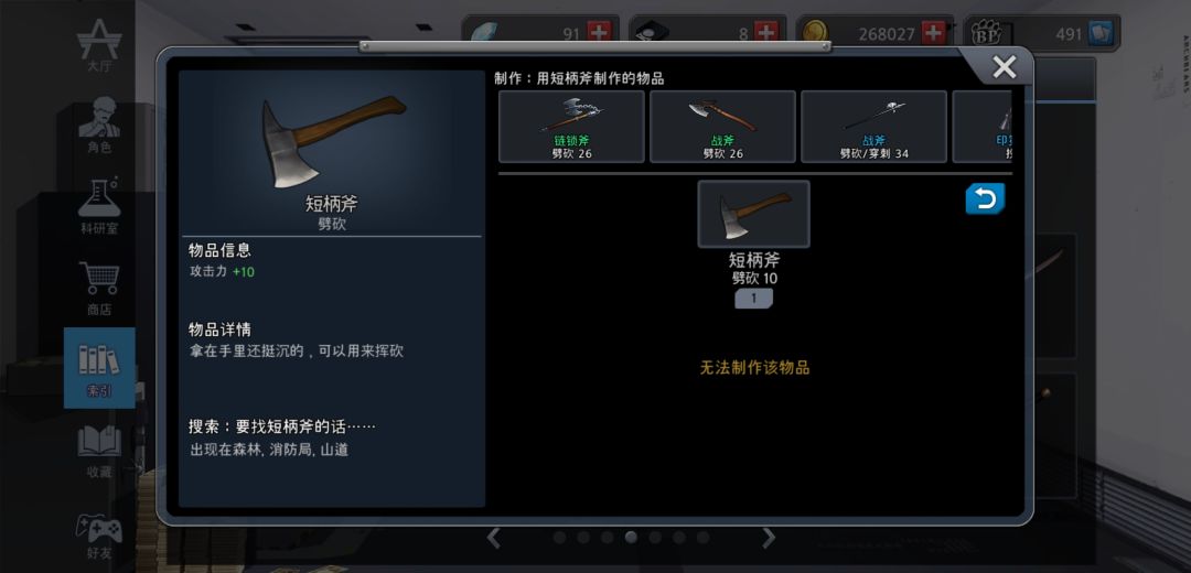 就因为这个短柄斧能够合成2把武器一模一样的武器“战斧”,导致他做错成了绿装战斧(需要做成蓝装的那把战斧),绿装战斧只能合成盘古斧或者激光战斧,我当时还纳闷,不应该吧,2把名字一样的武器?我看了下发现还真是。所以来这里反馈一下,希望官方可以及时纠正这个问题。虽然对我们一些老手来说不是大问题,但因为游戏要出国服的,会有许多萌新。如果上线国服还是这个样子,我觉得这是一个坏影响。所以希望及时改好。(蓝装改成“大战斧”也好哇。)