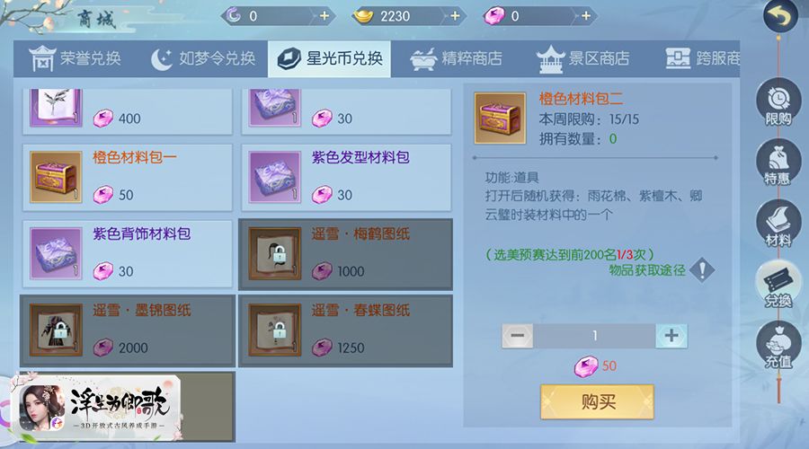 选美大赛作为《浮生为卿歌》手游中的一款限时活动,其时间一般是从周一、周四早上九点开始并且每场活动持续3天,在此期间,选手们每更换一次装扮都能获得相应的装扮积分,但同一件时装只能累计一次装扮积分,所以尽量使用不同的时装来进行评选哦。在活动期间内,选手们每日均有2次免费更换装扮的机会。当免费更换次数都用尽后,最后一次提交的装扮又不是很满意的话,选手们还可以自行购买一次额外更换的机会,以提交自己更为满意的作品。