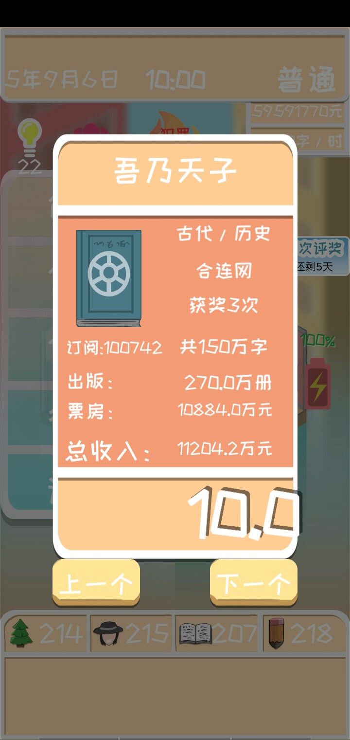 就是如果你的评分到了十分的话,出现有下降评分的状况,写下一章的时候,就提升你原本上一章灵感的10点以内,这样就不会出现掉评分的。嗯,拜拜