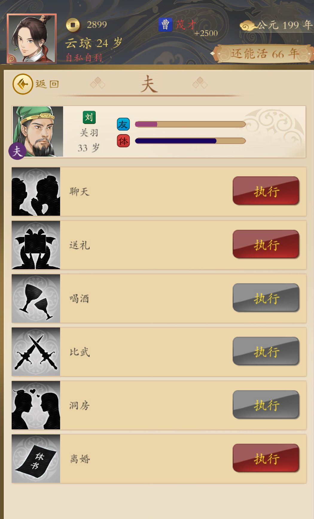 我和关羽结婚了,还有了儿子关平?!但是为什么好感度会下降???关羽不是重情义的人设??洞房每次耗费40点好感度不科学啊,不是结婚了吗?!!!