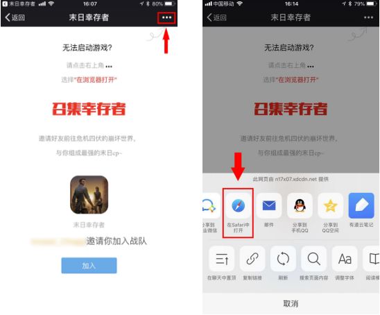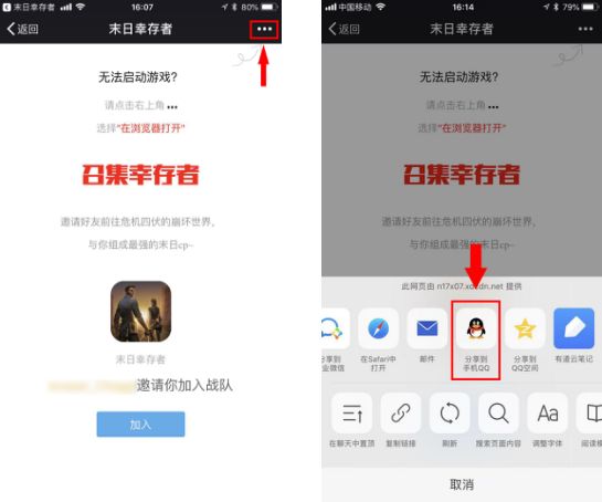 受邀方在收到对方发来的链接后,请不要直接打开链接就点击「加入」按钮。请先通过右上角按钮或直接复制链接后,在浏览器中打开,然后再点击「加入」按钮进入游戏。