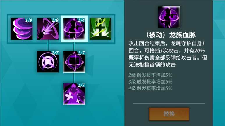 龙魂公主初始为五星,混乱阵营,体力型使徒。1技能高概率阻止目标回血。2A技能为全体攻击并可以灼烧敌人并阻止目标回血;2B技能是掠夺全体敌人血量,并有概率抢夺目标所有增益效果。3A技能为被动技能,每个回合结束可以格挡对手一次攻击,并有概率将伤害反弹给攻击者;3B技能为被动技能,只要龙魂公主在场上,任何队友被暴击时,高概率全体增加能量;3C技能为被动技能,每回合行动前高概率清除自身所有减益状态。领袖技能为我方所有使徒增加33%血量。