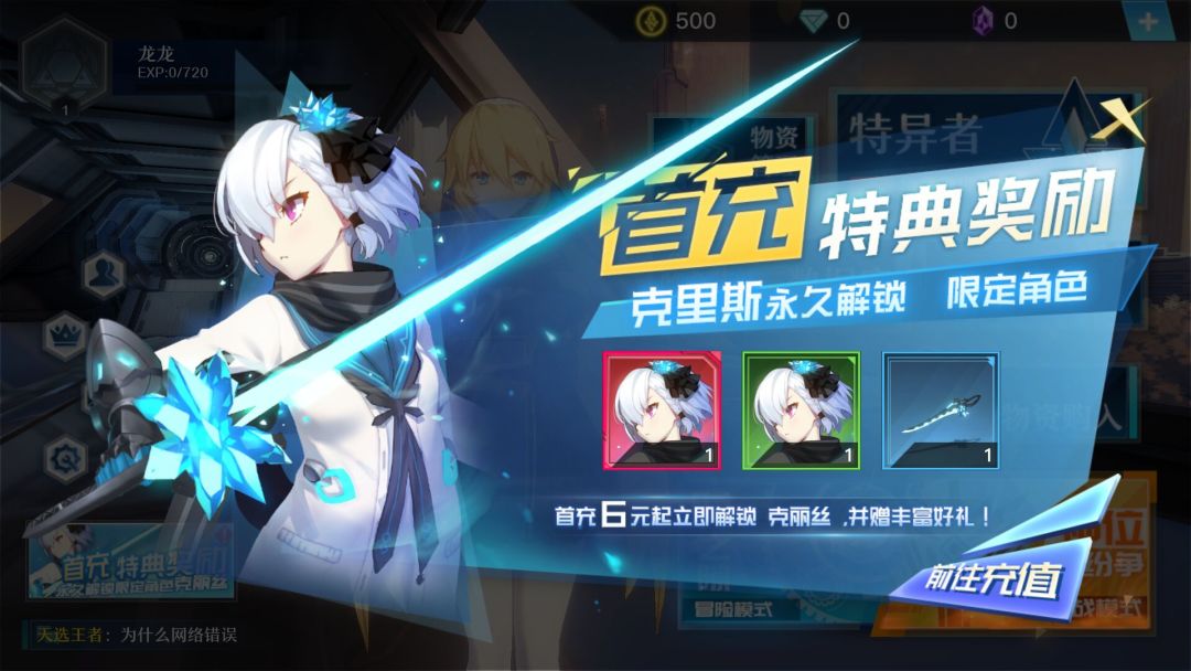 初进游戏之后,出现在眼前的就是大大的首充送好礼,让我一下子对游戏的好感度降低不少……然后立马就充了钱,克里斯真可爱!克里斯天下第一!我永远拥护克里斯.jpg