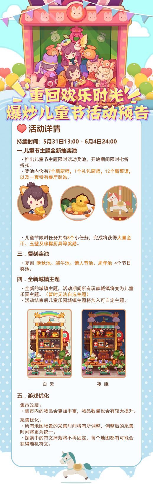复刻晚秋池、端午池、情人节池、周年池4个奖池,还有全新城镇主题