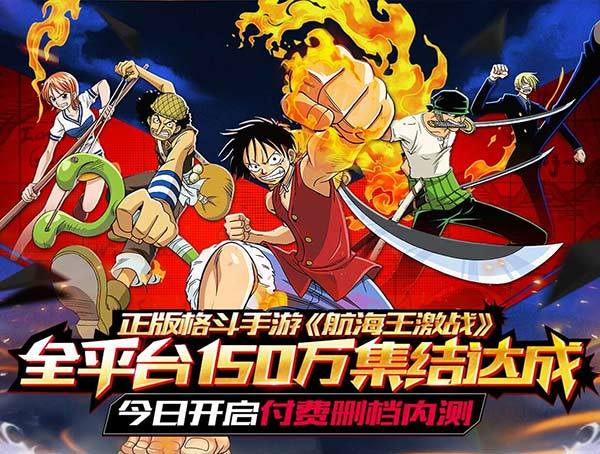 航海王首款正版授权格斗手游——《航海王激战》今日11:00正式开启付费删档测试啦!同时,游戏全平台公测预约总是也突破150万大关!《航海王激战》此次测试不仅将迎来全面升级,还为150万热情海迷们准备了一连串惊喜,赶紧来看看吧!