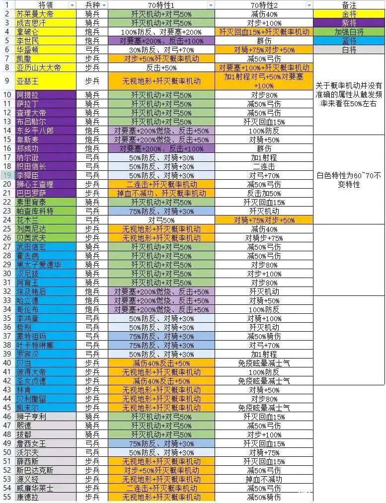 这里把主流常玩将领的测评做一个简单的汇总: