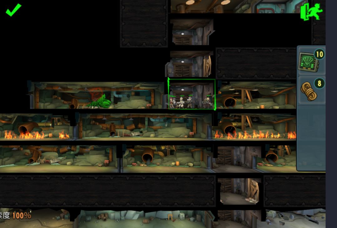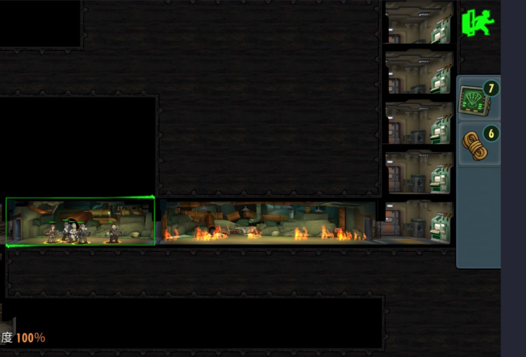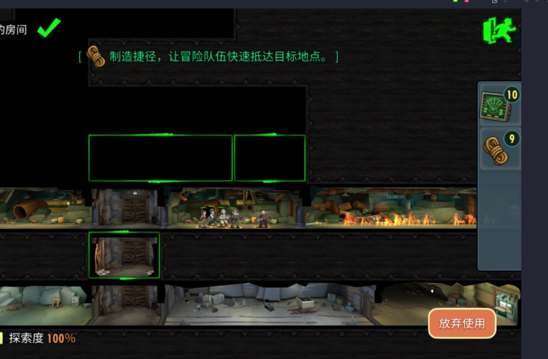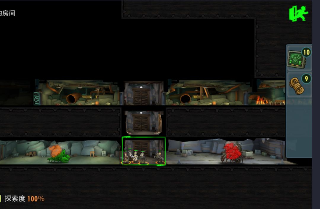 占领房间后不要退出,点击继续探索,向左击杀泥沼蟹大怪,拿取怪后面的资源后来至图⑦位置,用绳子吊进上面的房间。这里要说明下,在没有探测房间的时候,要是直接用绳子吊入某个房间,最好是那种小房间,最好是一格房间,因为这些房间不是电梯就是传送,很少有怪。