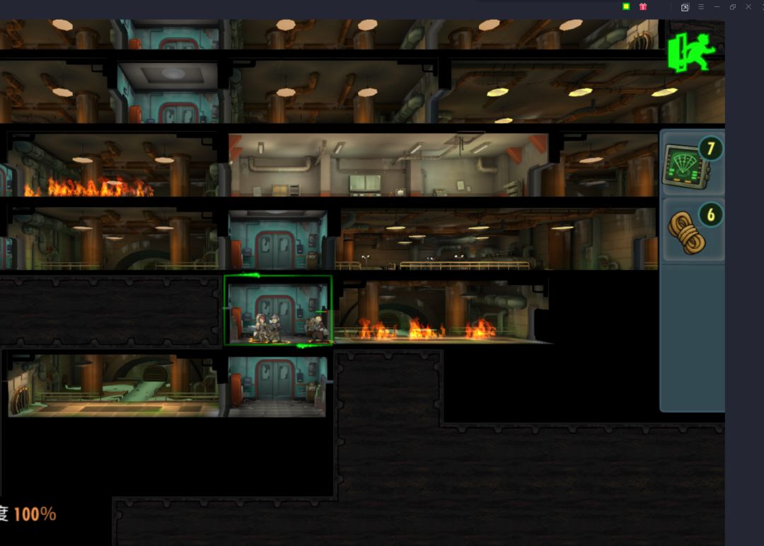 图③位置先向下走拿资源,再回来踩过有火的房间前进。