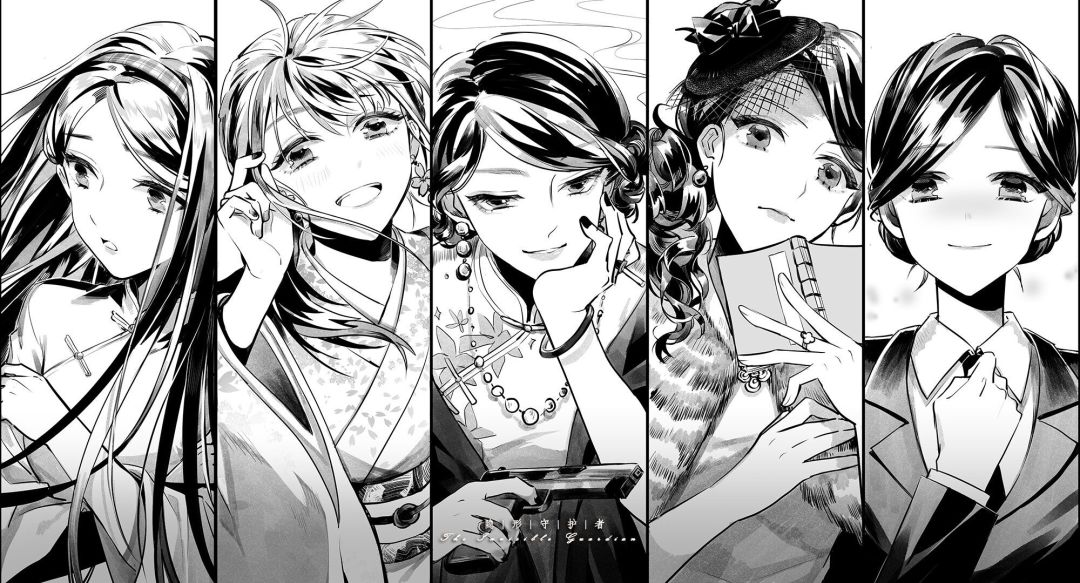 有人见过这张图吗?应该是同人,画师大大有人知道吗?从左到右应该是(不确定前两个)方敏 武藤纯子 庄晓曼 陆望舒 顾君如