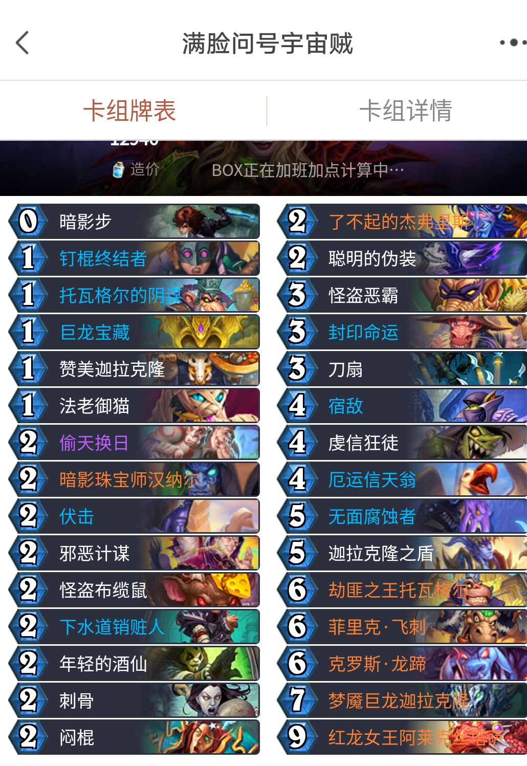 最近标准环境不错,猎人少,是我宇宙贼上分的好日子(✪▽✪),我稍稍改了一下套牌,感觉强度不错😊,比之前的宇宙贼顺手了不少