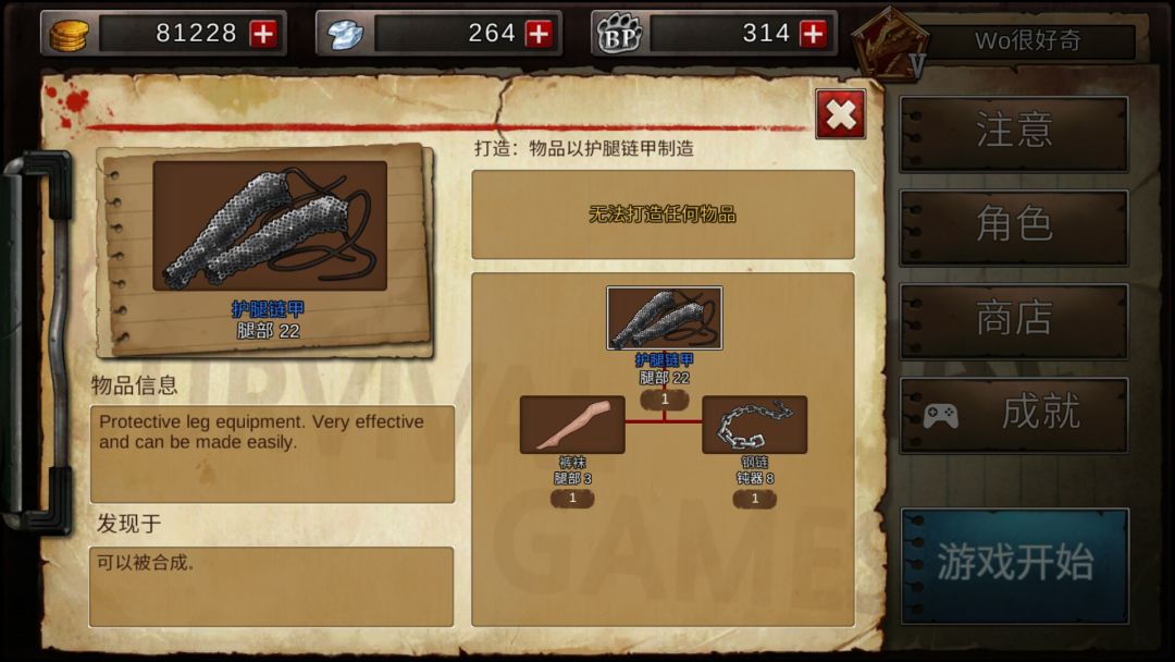 我个人最喜欢护腿链甲。钢链需求不大。但丝袜是随机发现的,所以不能局局都出。羽靴虽然护甲低了些但是如果在后期摸到了秘银或者秘法石可以直接合成。十分简单。