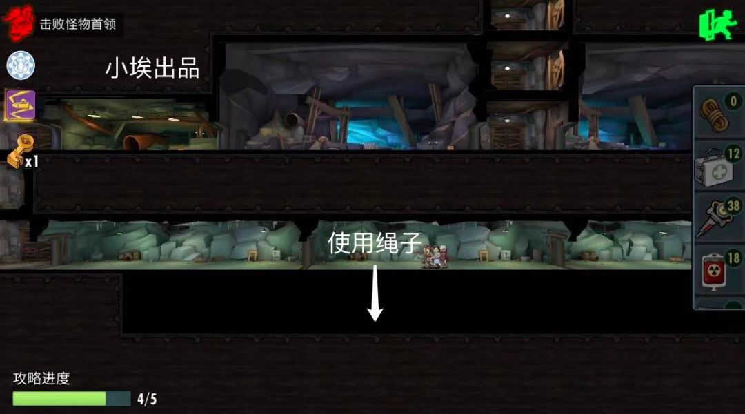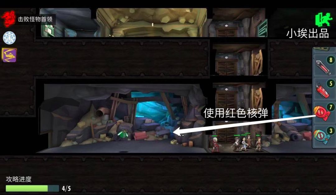 第四层图1️⃣需要使用红色核弹的位子,直接核弹炸死自爆苍蝇,图2️⃣需要使用绳子的位子