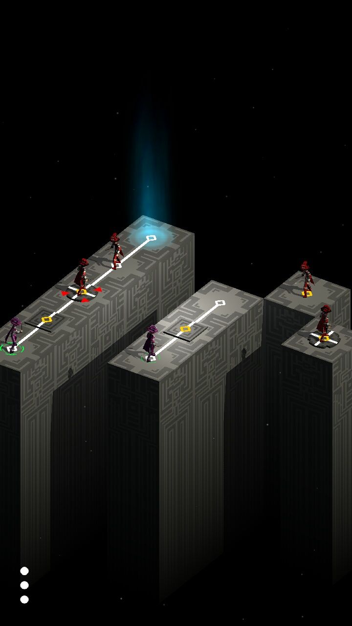 画面:游戏画面大部分为黑色,仅中央的游戏平台和上面的人物是带颜色的,我觉得游戏完全可以向纪念碑谷一样在周围也配上与游戏保持和谐的贴图来使得游戏更加的精致。小兵在平台上还带了光影效果 细节也足够了。