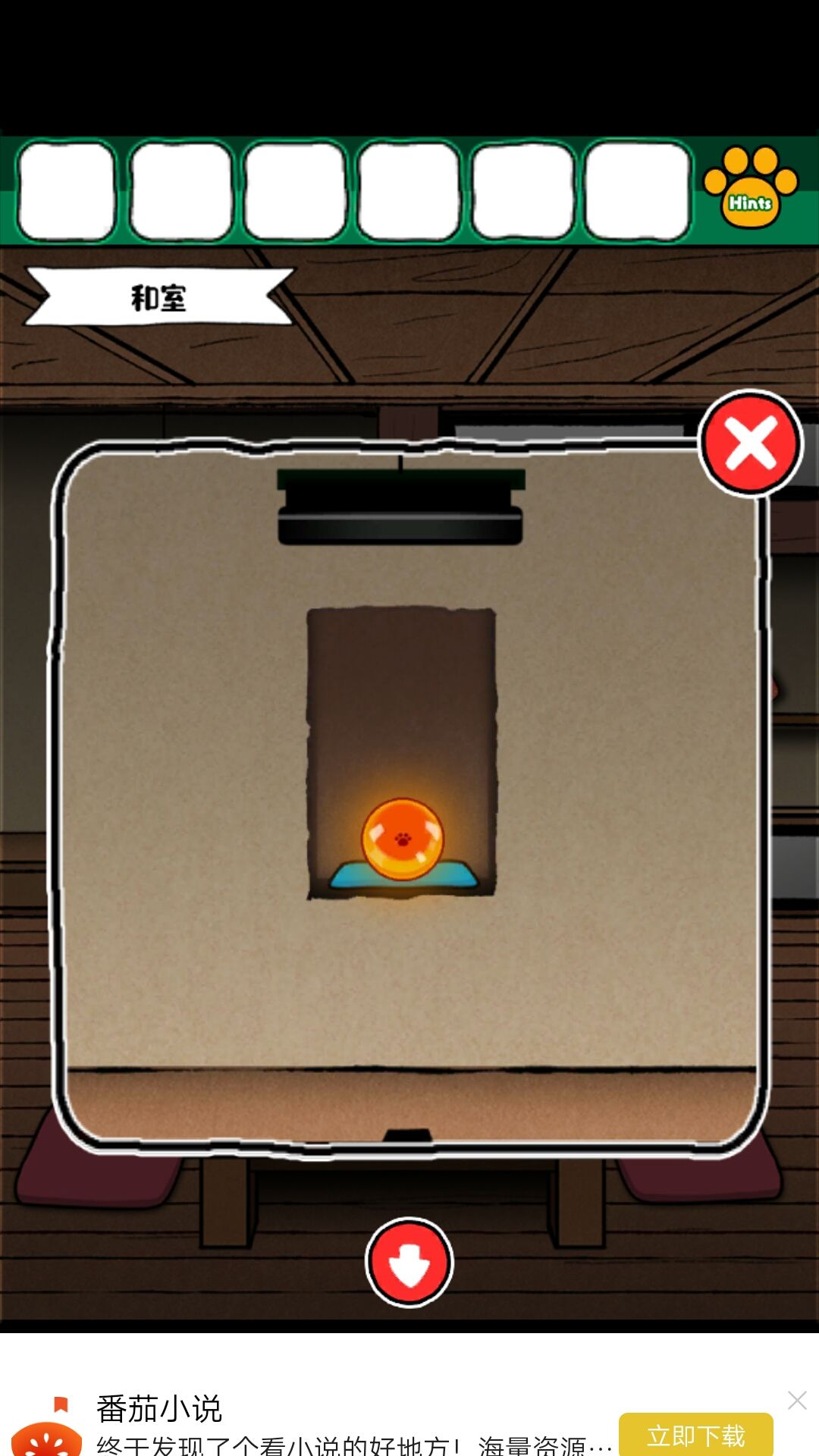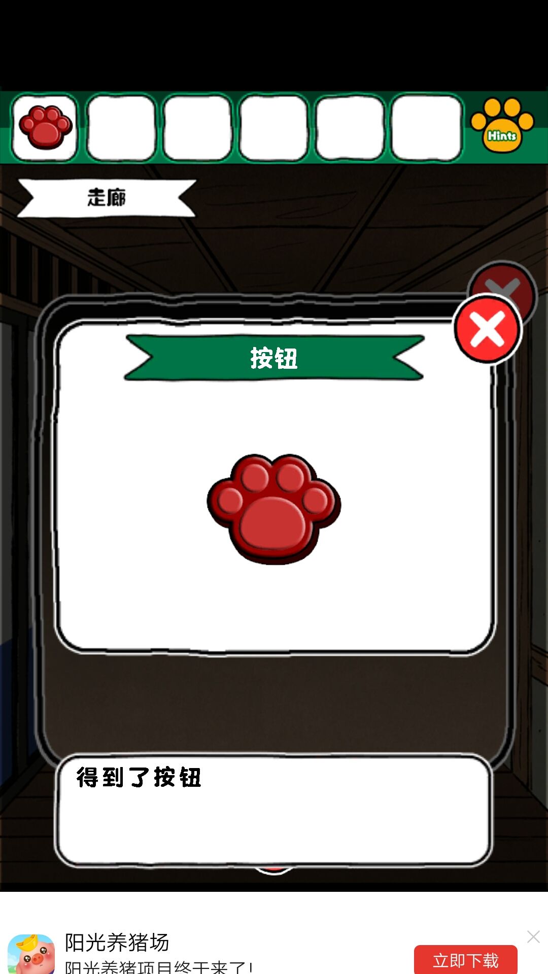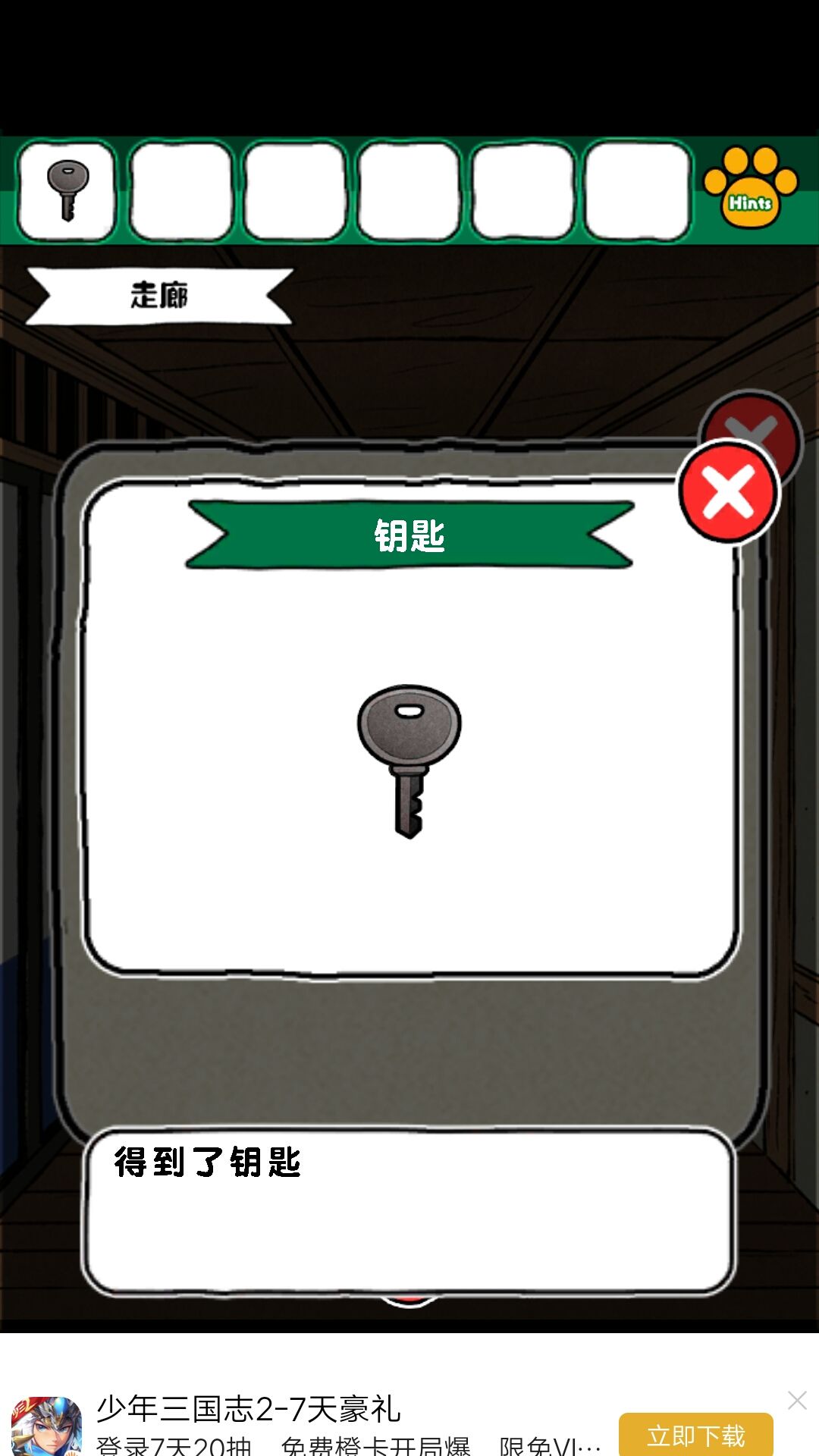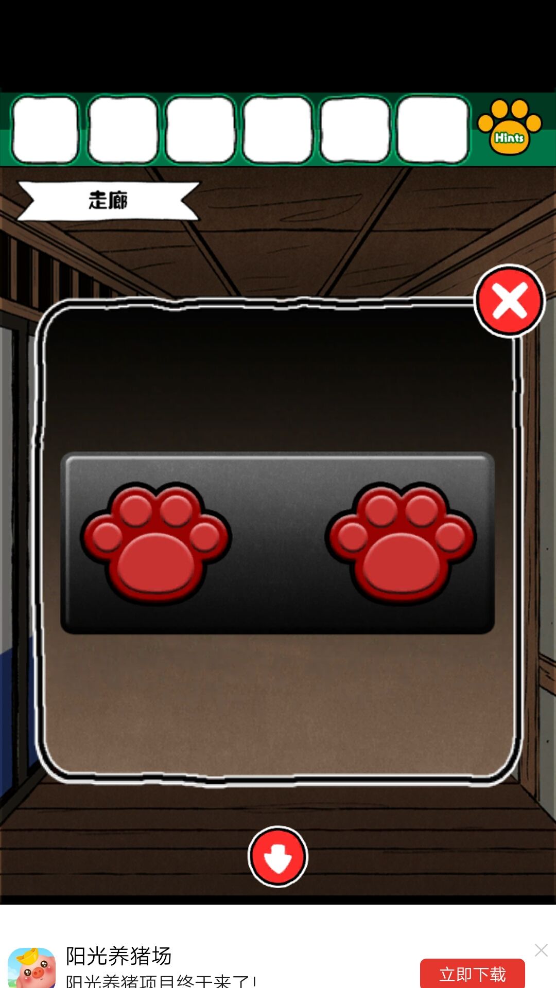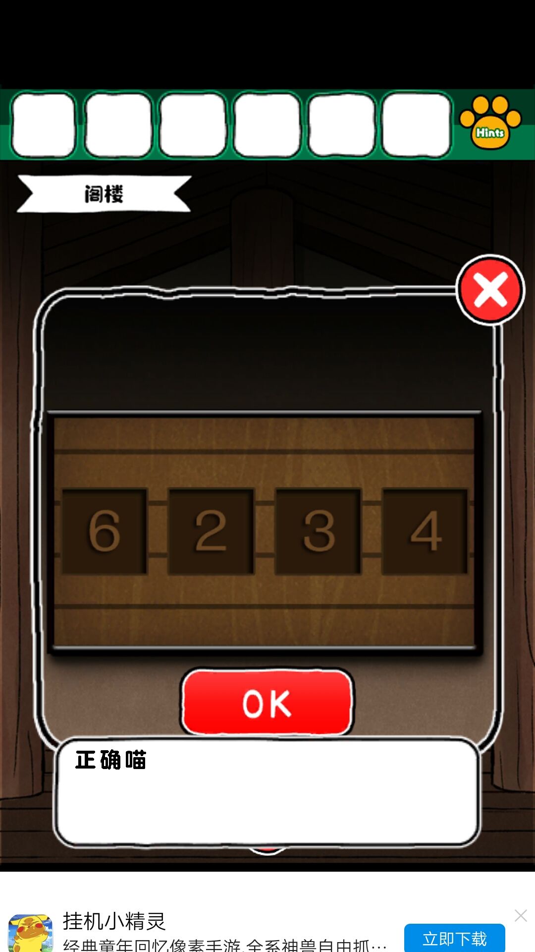 8.获得磁铁后,在客厅的洞中得到钥匙。钥匙来小老鼠的柜子,得到撬棍,撬棍打开画下边的木板,得到金币给小老鼠。得到红色盘子,给到娃娃旁边的盘子,得到密码:6234最终获得一本书