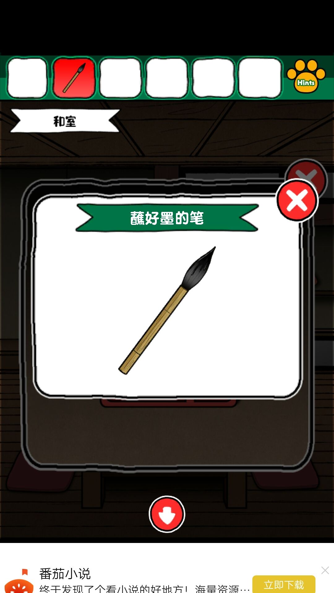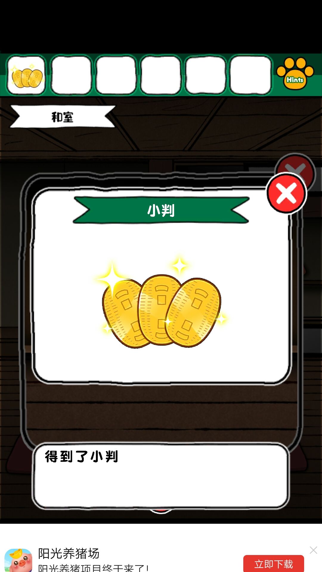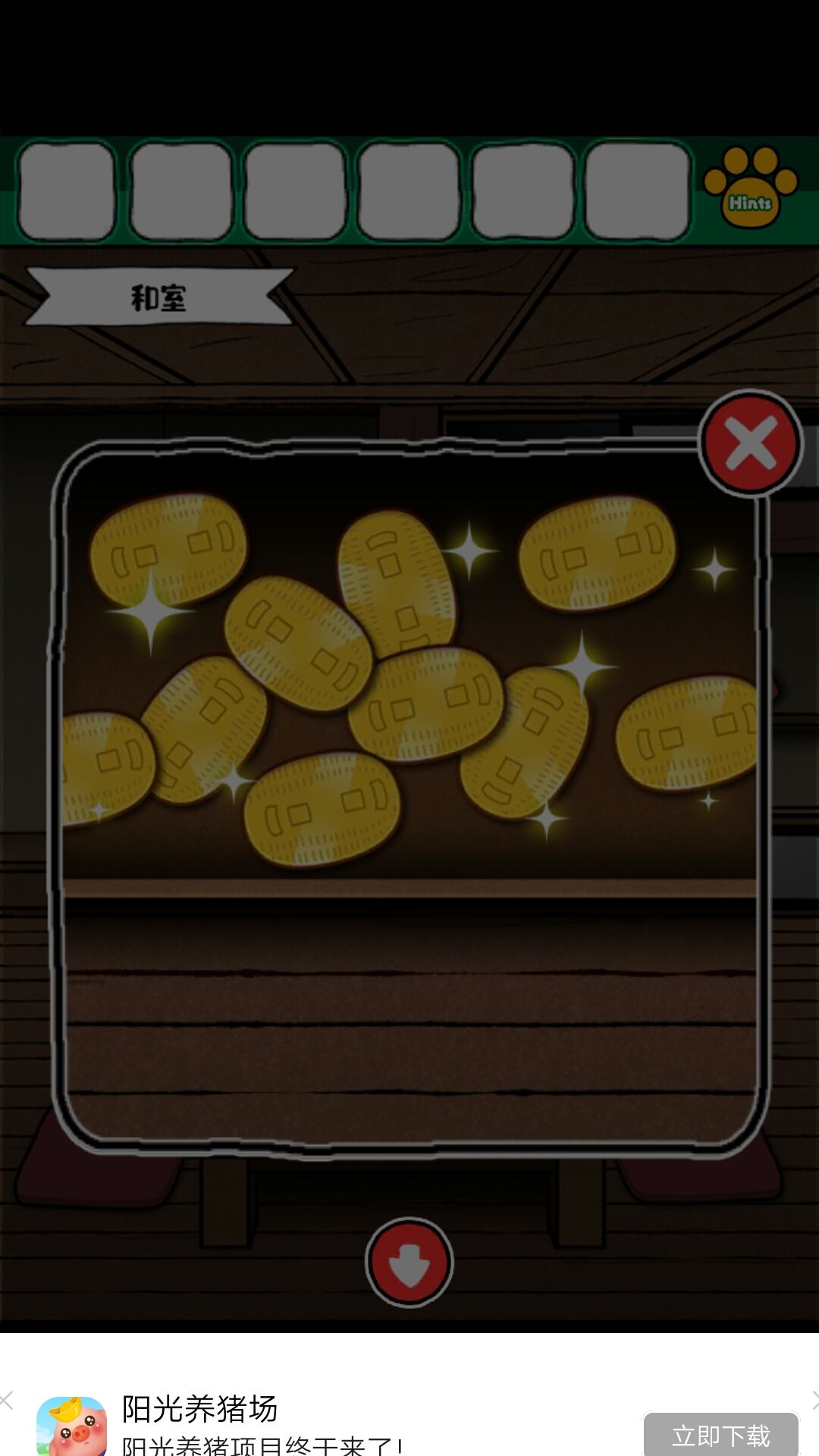 2.打开柜子后获得木棍和四个彩色花盆样子的东西看下上边的花朵数量,为和室的柜子密码