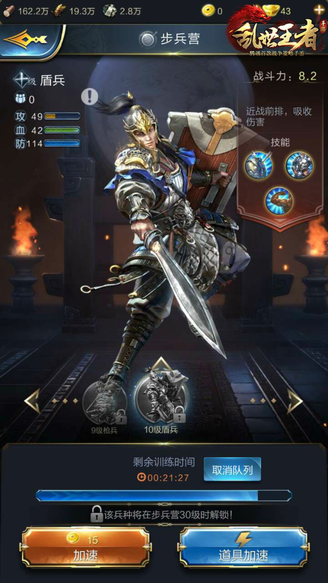 游戏中对盾兵杀伤最大的兵种,从某种意义上来说克制盾兵,枪兵的3个技能分别是对骑兵杀伤增加,自身攻击力增加以及有一定概率造成3倍伤害!攻击力毫无疑问是游戏中的王者,但是由于与盾兵一样是在步兵营训练,在前期盾兵不足的情况下,都是优先生产盾兵的。