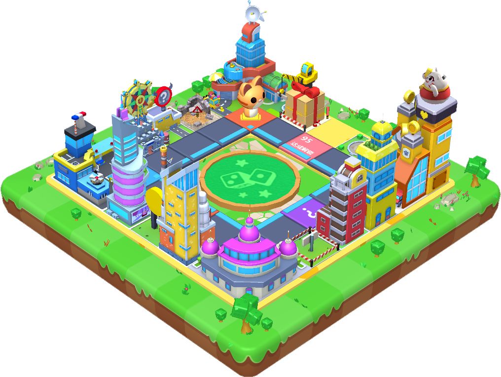 玩家掷骰子在一个代表繁荣城市的棋盘周围移动。骰子的数量是影响玩家游戏进度的关键。