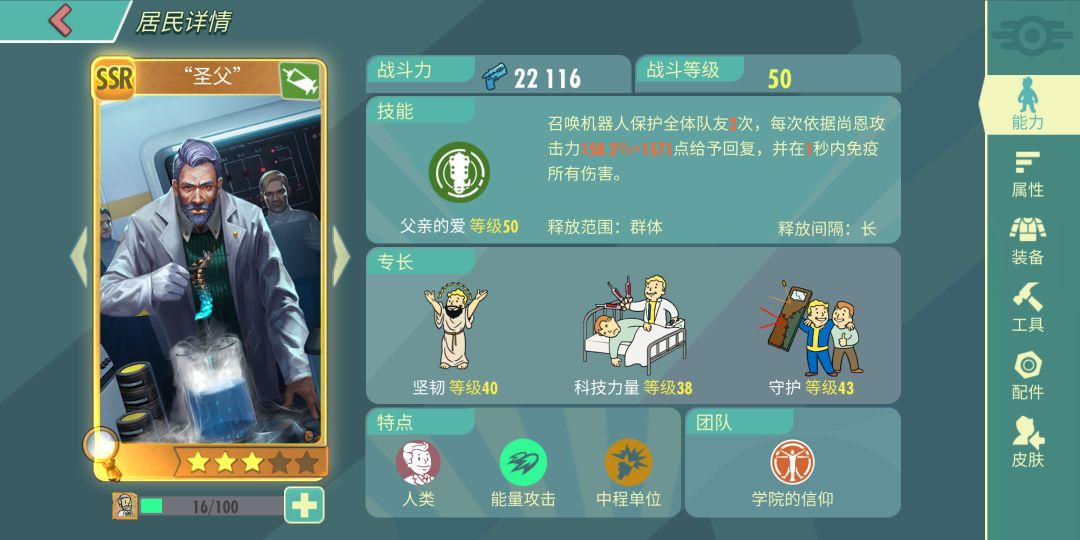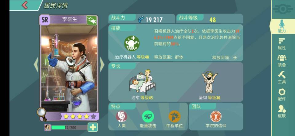 推荐理由:SSR奶妈就圣父和卡灵顿两个且获取难度较高,如果没有可以用李医生代替,李医生相对容易获取,每日的学院势力任务都可以换,而且李医生奶量不低,还能消除辐射,无论刷图还是竞技场都不弱! 配件推荐:学院研究者(利用学院研究者特效有效提高奶量,增加队伍续航能力。) 属性选择:优先选择攻击.生命,抗性次之。