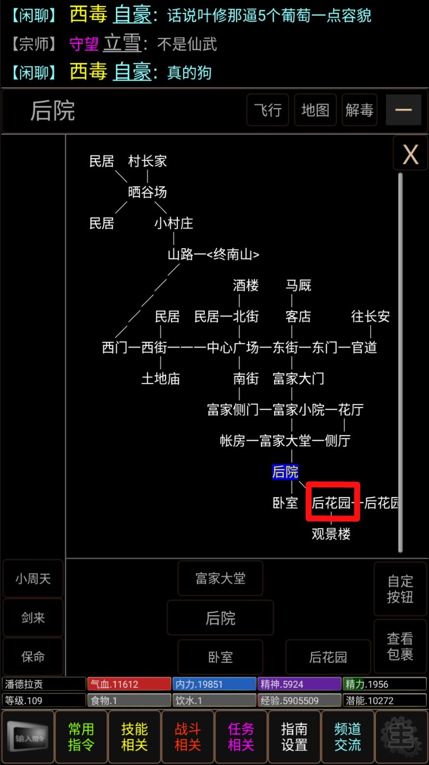 接着飞终南山,来到松柏林向右走,输入指令kan frutex得到茯苓