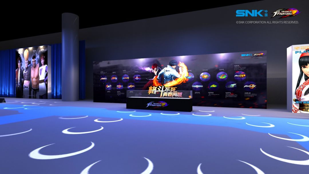 目前,发布会现场效果图已全部完成,整个大厅会留出一处区域作为拳皇历史墙,展示SNK公司创立“拳皇”这一品牌23年(1994-2017)来的辉煌历史和无上光荣,让大家完全置身于拳皇的二十三载空间维度之中。每一处细节都争取做到无比熟悉,从门口进入的一瞬间即紧握待命的双拳,随时随地准备进击的火焰。