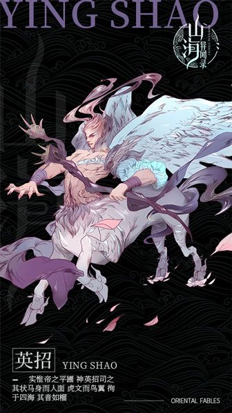 图注:《山海经·西次三经》实惟帝之平圃,神英招司之,其状马身而人面,虎文而鸟翼,徇于四海,其音如榴。