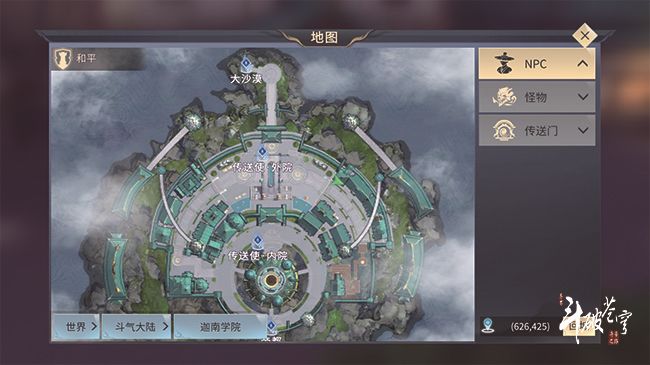 坐标:世界>斗气大陆>迦南学院>(628,423)【不清楚的可以看图4哦,三角绿色标识的所在位在位置】