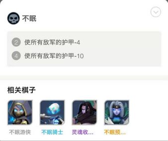 不眠族的羁绊分两层,上场2名棋子激活第一层,减少敌人4点护甲。