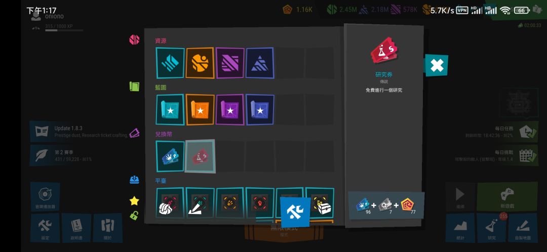 96声望+7个抽奖券+77个加速器可以制作一个研究票