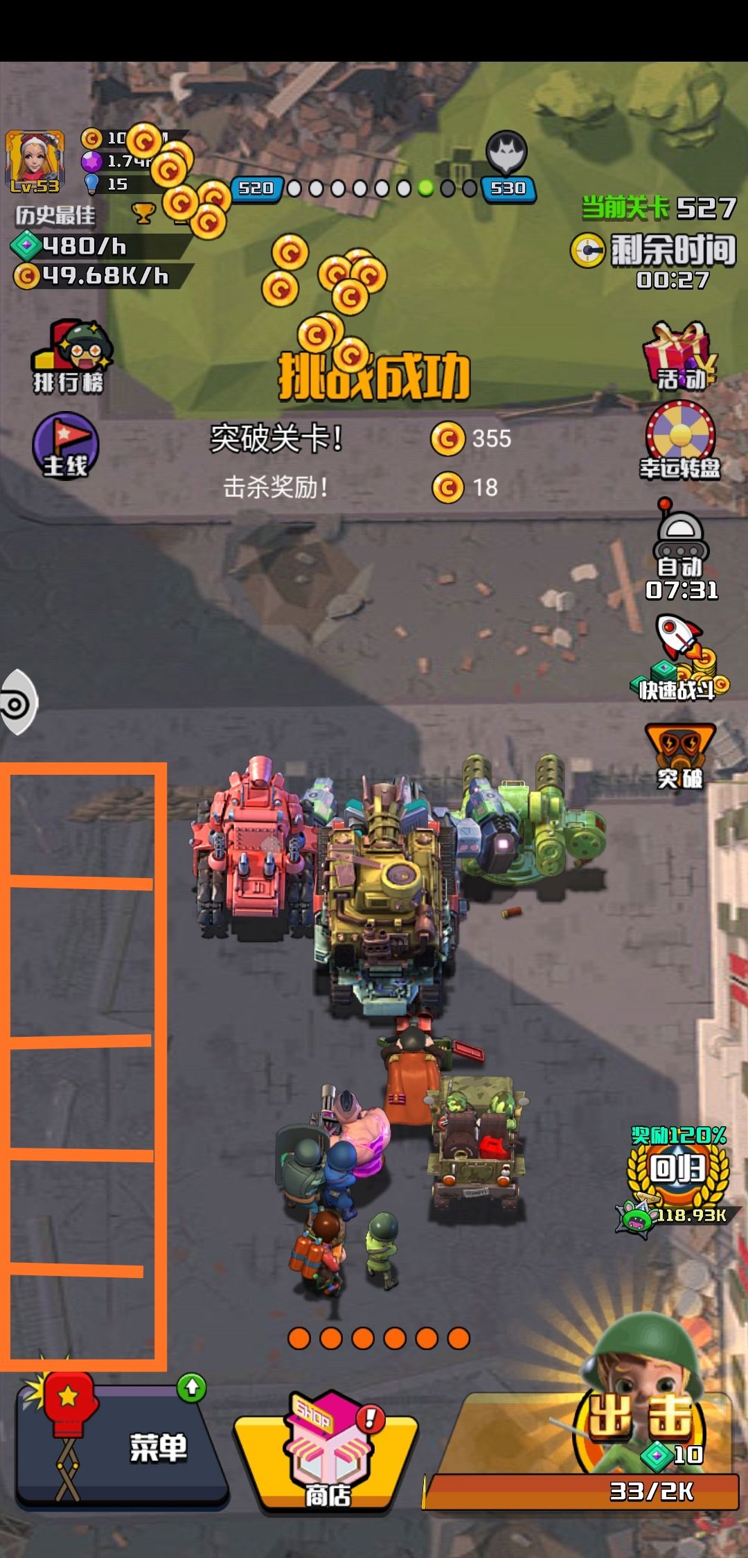 增加一键升级,按住连续升级也有点慢。一下要给6辆坦克升级感觉太慢了