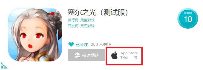 2.之后,至《塞尔之光》测试服页面(https://www.taptap.com/app/99588),点击【试玩】(或【下载】、【App StoreTrial】,依不同TapTap客户端版本不同而不同)