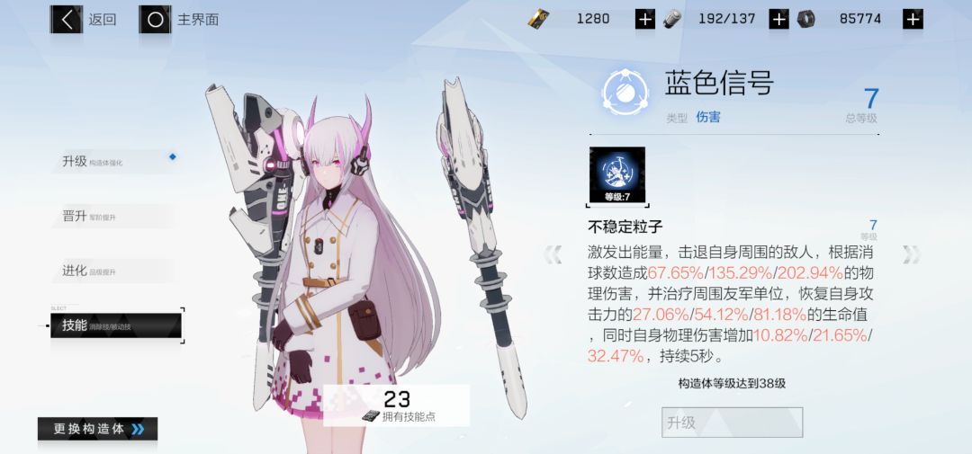 蓝色信号消除效果如图所示,击退敌人并治疗队友,还能给自己赋予物理攻击力加成,是一个集自保、辅助、增益于一体的技能。不仅能在队友血量不足时予以帮助,还能提高自己的输出能力。该技能是丽芙的关键技能。技能点不多的情况下应该优先升级该技能。既能保证辅助能力足够,同时也能提高自己的输出能力。
