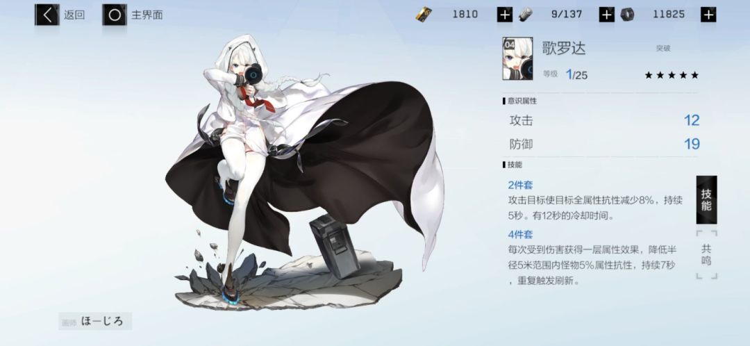 这一套与第一套不同的是偏向于歌罗达的受击后削弱敌人的属性抗性,牺牲了队友的属性伤害加成。个人不推荐第二套意识搭配,因为歌罗达四件套的属性削弱最多为13%,并不能像伏尔泰套装一样能够叠加。所以我个人推荐第一套,第二套只是备用。