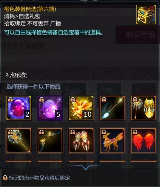 与此同时,在1级时可以获得一个橙色自选(第六期),其中包含的聚灵石想必很多小伙伴都知道,这是合成很多非常酷炫的武器和道具的重要材料。