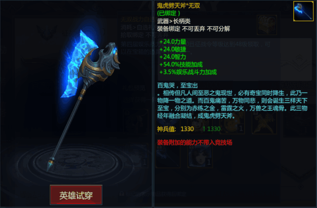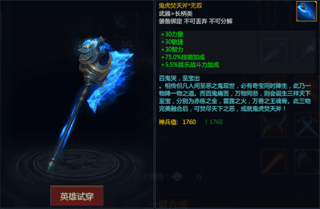 同时,鬼虎劈天斧还能用来合成鬼虎焚天斧,不管是外观还是属性上,都要更高一个层次~