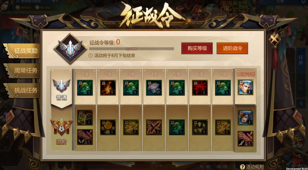 进阶奖励:达到指定征战令等级且购买了进阶令后可领取。